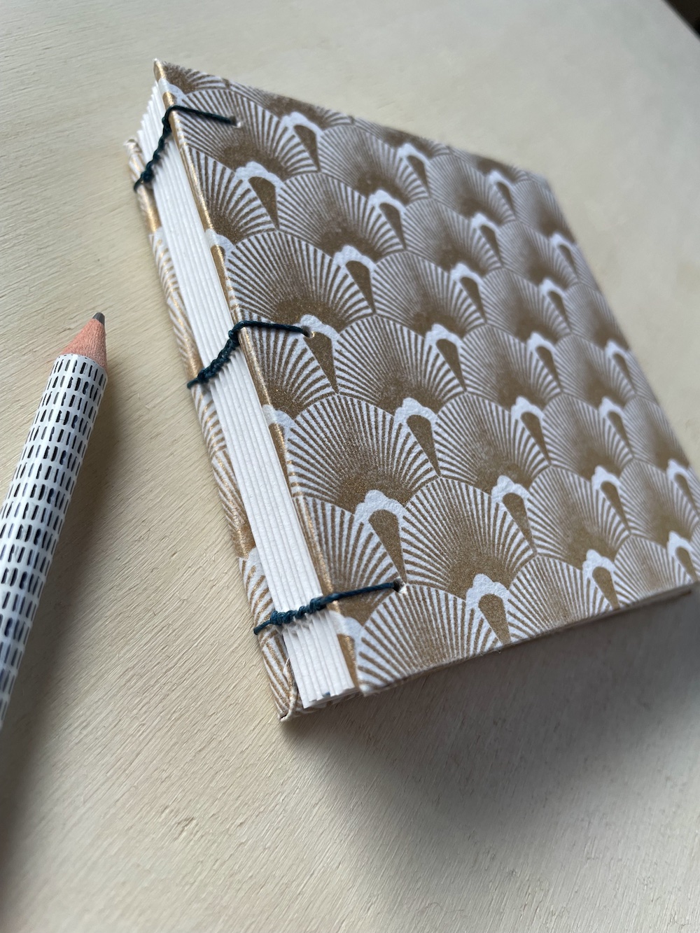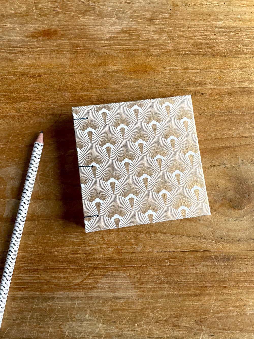 Mini carnet, modèle Bilou format carré reliure copte fait main, pièce unique