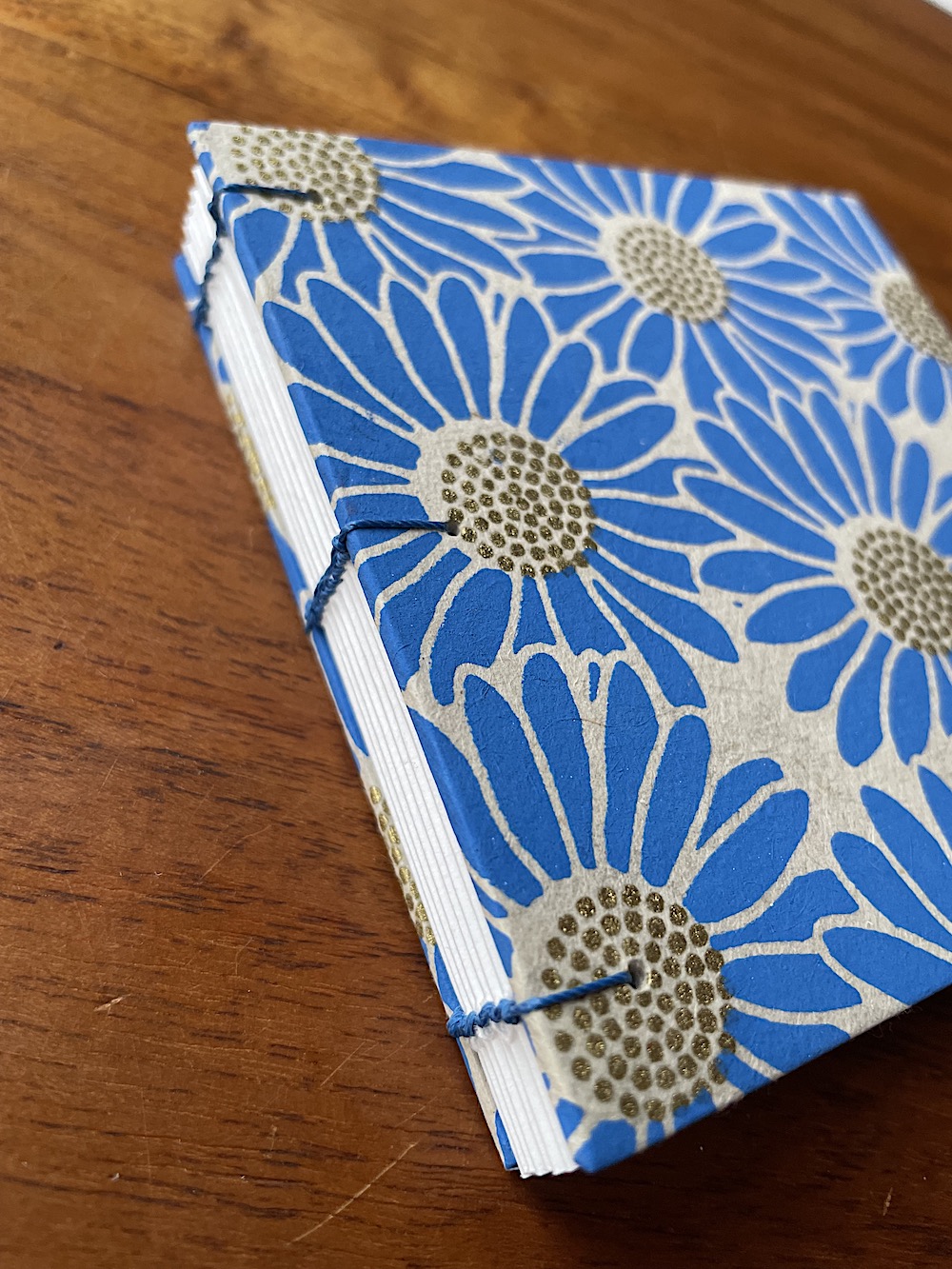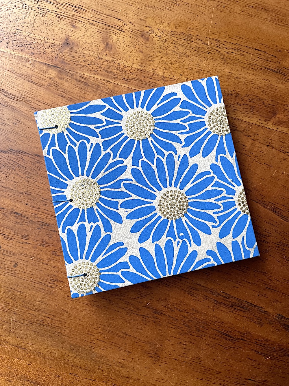 Mini carnet, modèle Bilou format carré reliure copte fait main, pièce unique