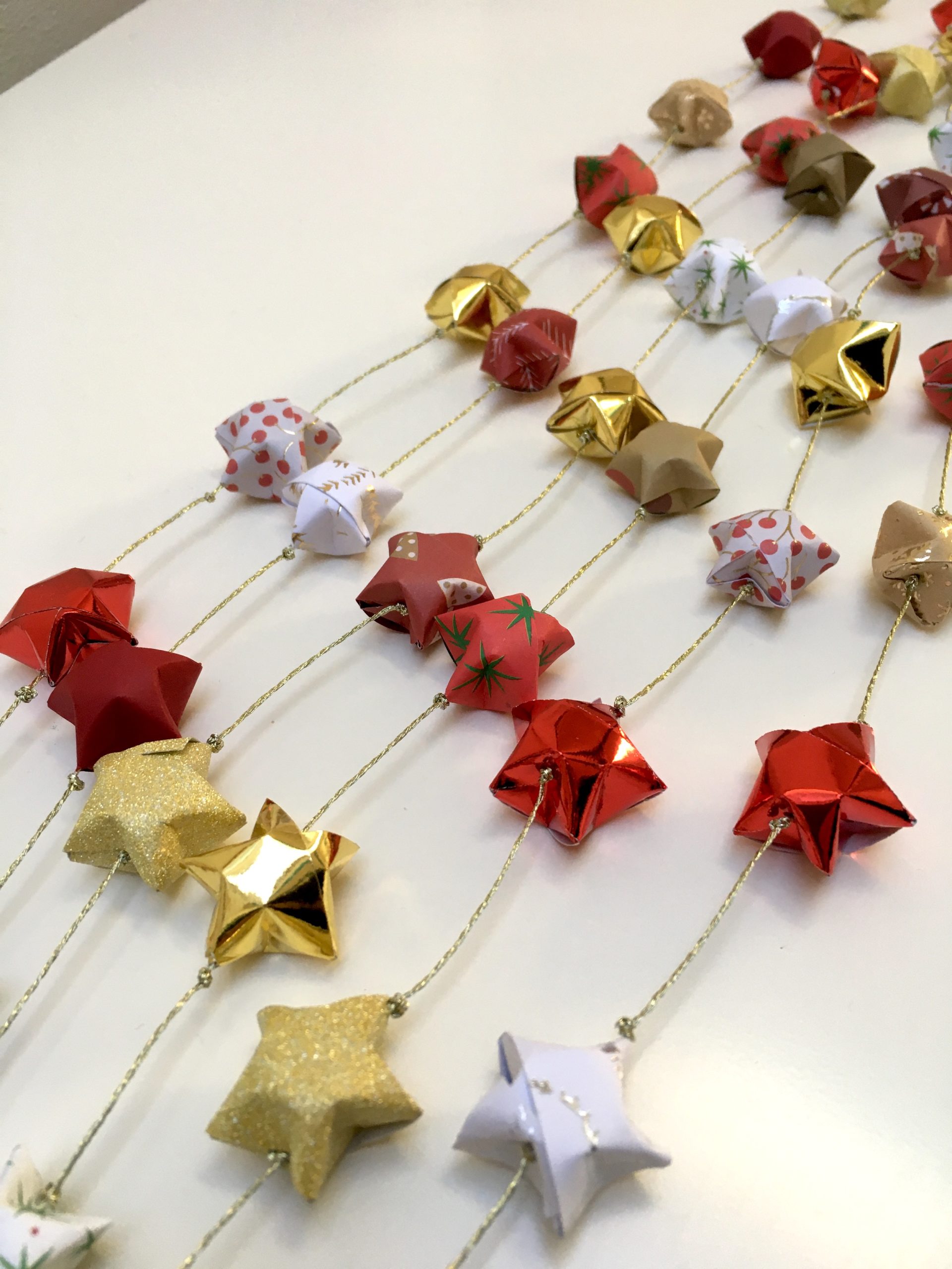 La Triplette de « gœurlandes » de noël en étoiles origami = Une guirlande, 3 brins d’étoiles!
