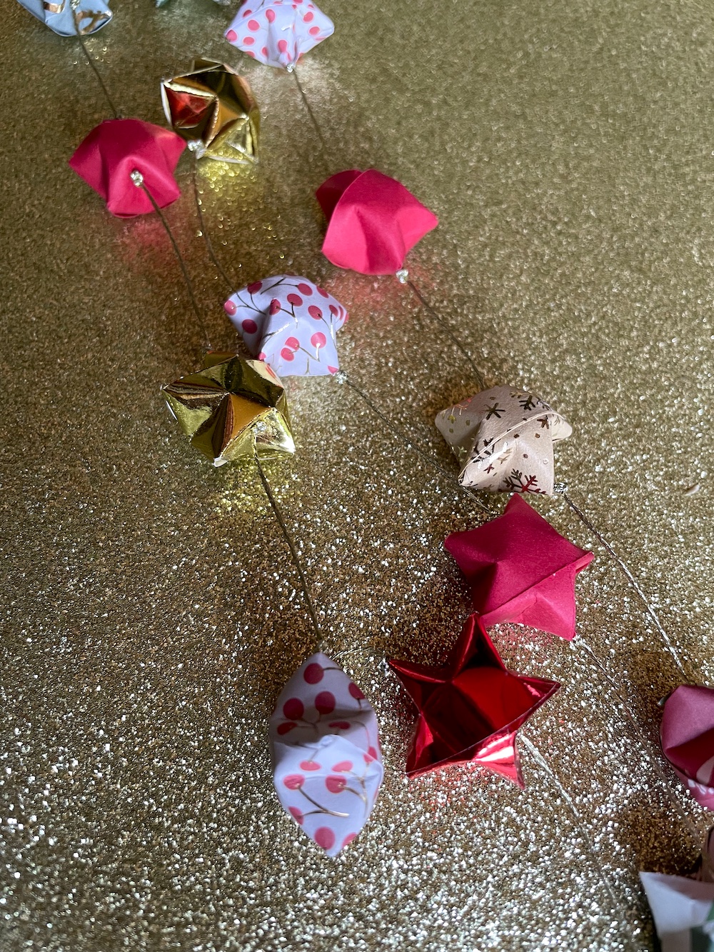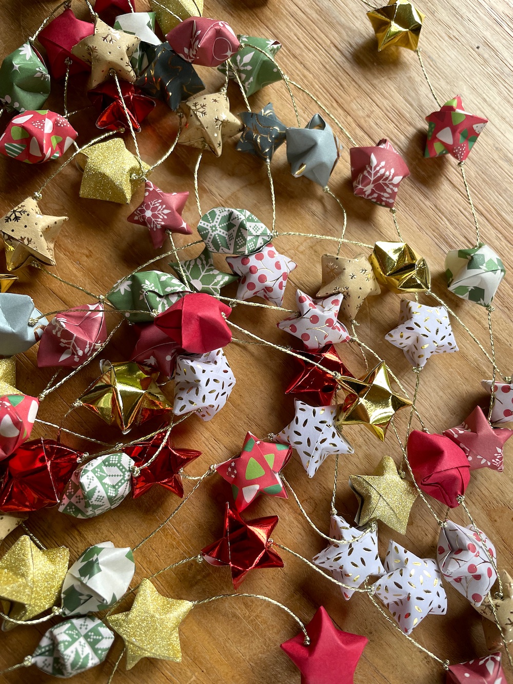 La Triplette de « gœurlandes » de noël en étoiles origami = Une guirlande, 3 brins d’étoiles!