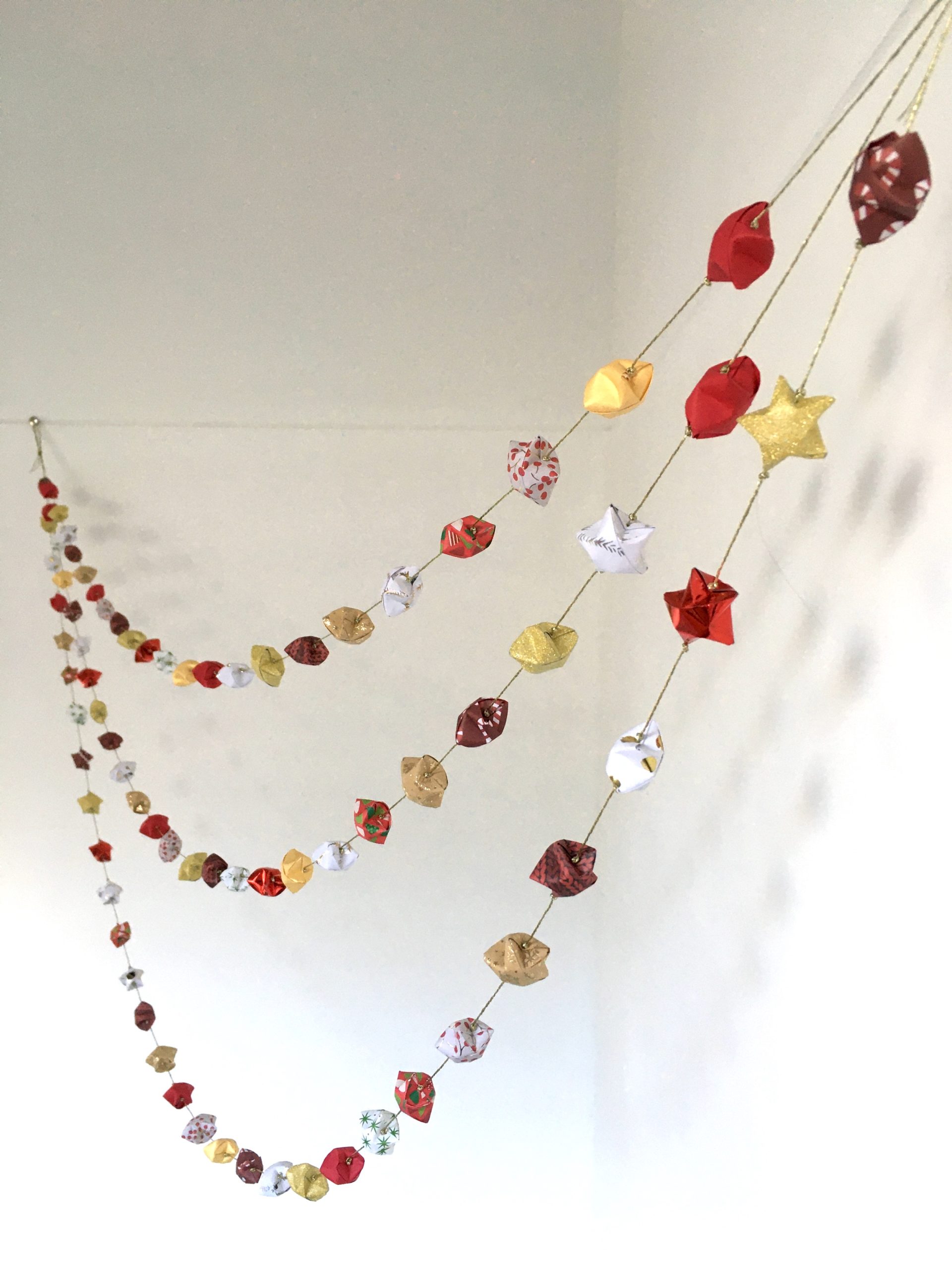 La Triplette de « gœurlandes » de noël en étoiles origami = Une guirlande, 3 brins d’étoiles!