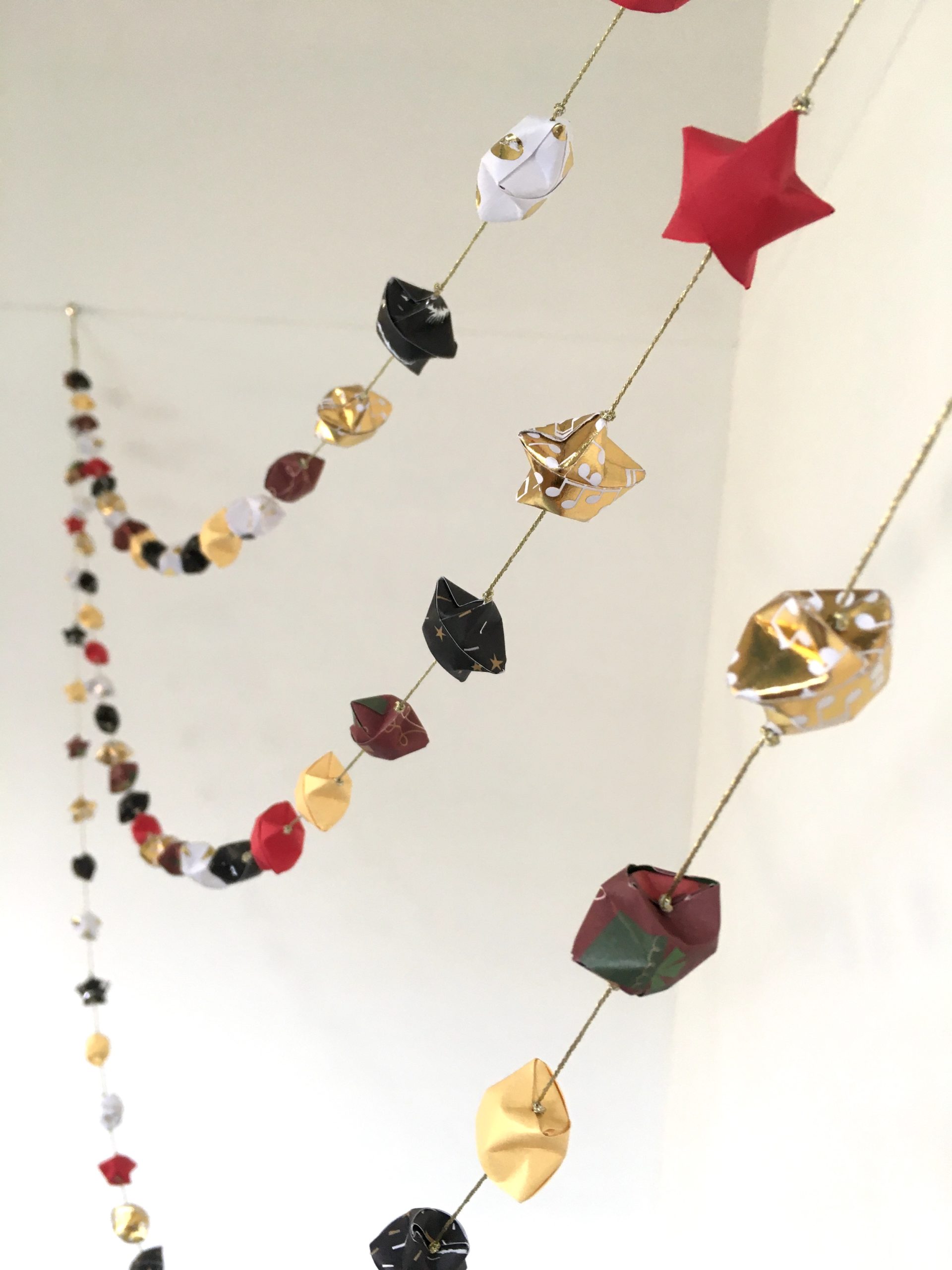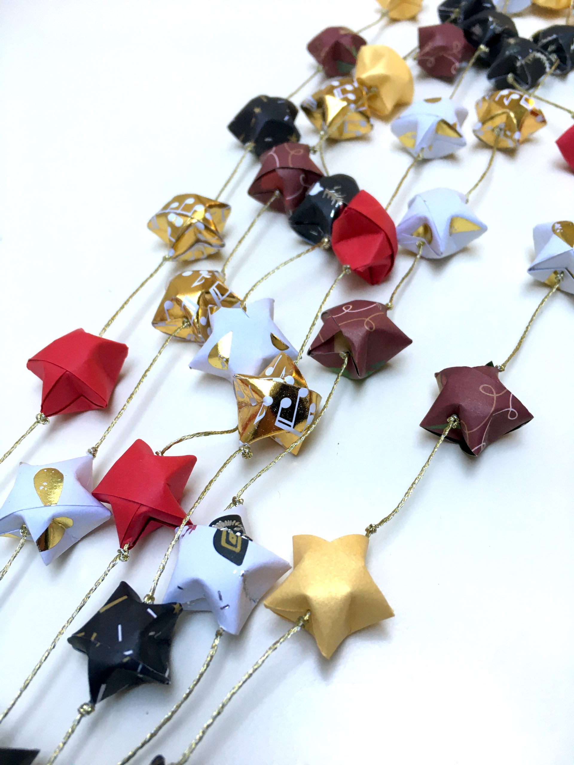 La Triplette de « gœurlandes » de noël en étoiles origami = Une guirlande, 3 brins d’étoiles!