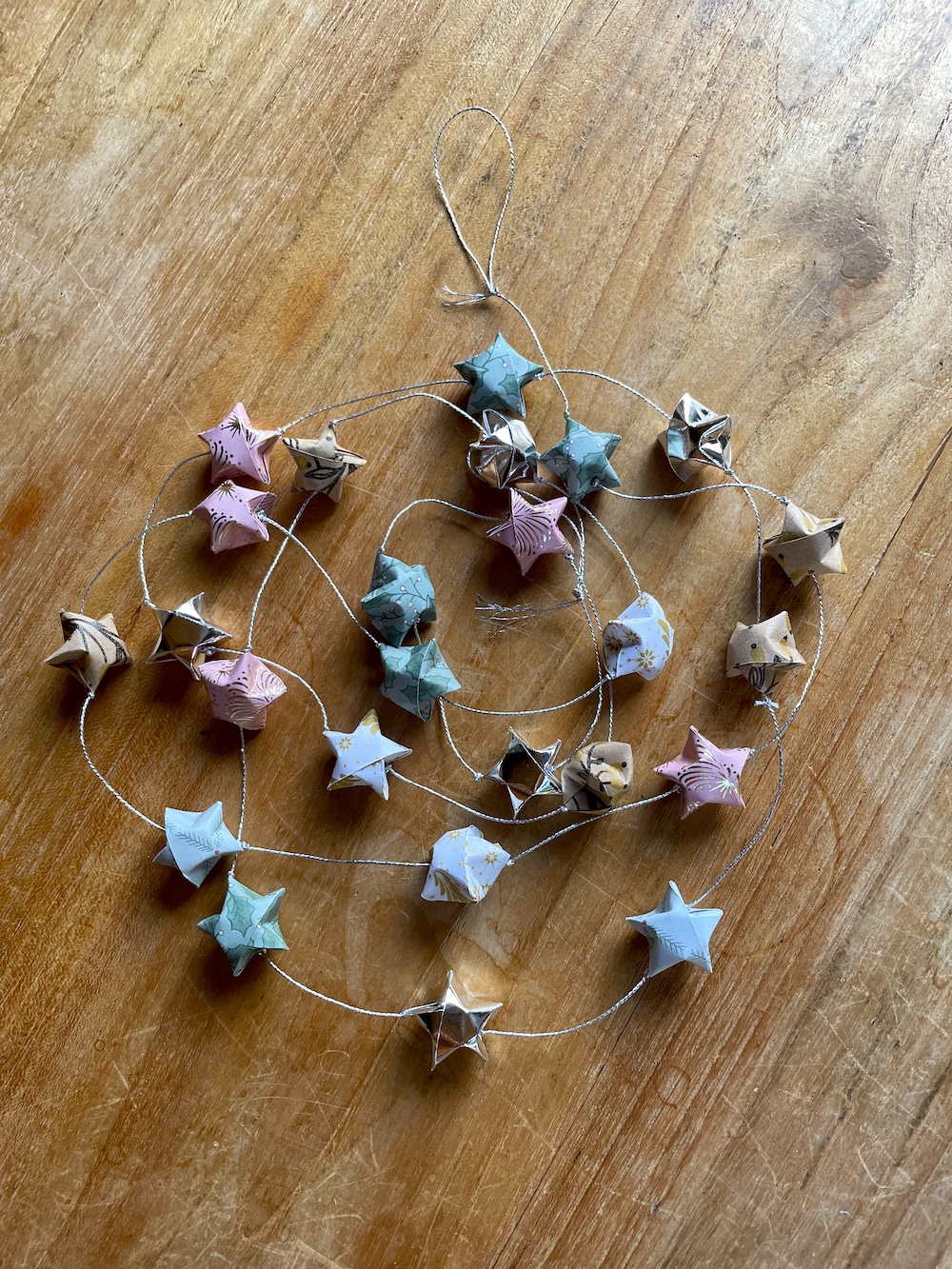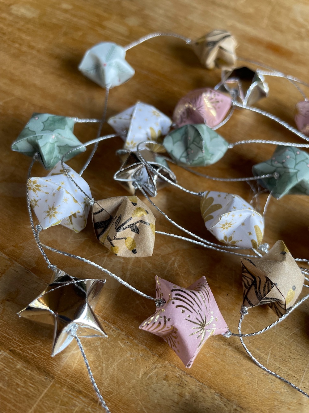 Petite « gœurlande » de noël en étoiles origami environ 140cm de longueur