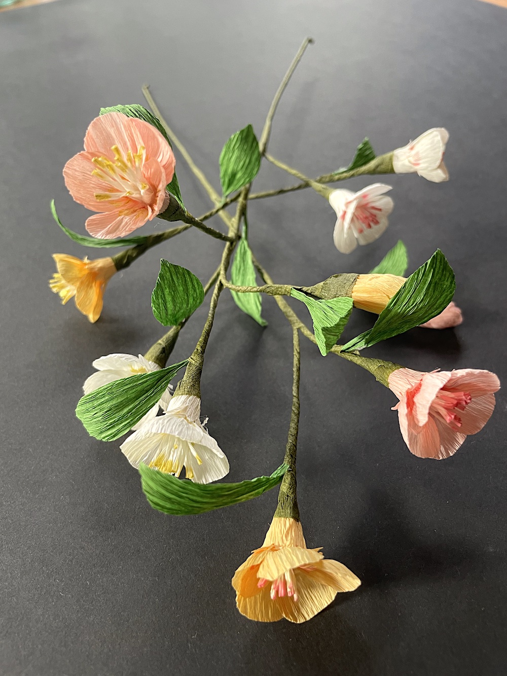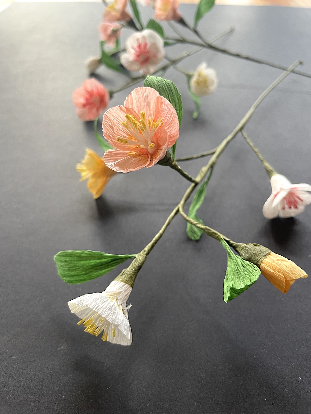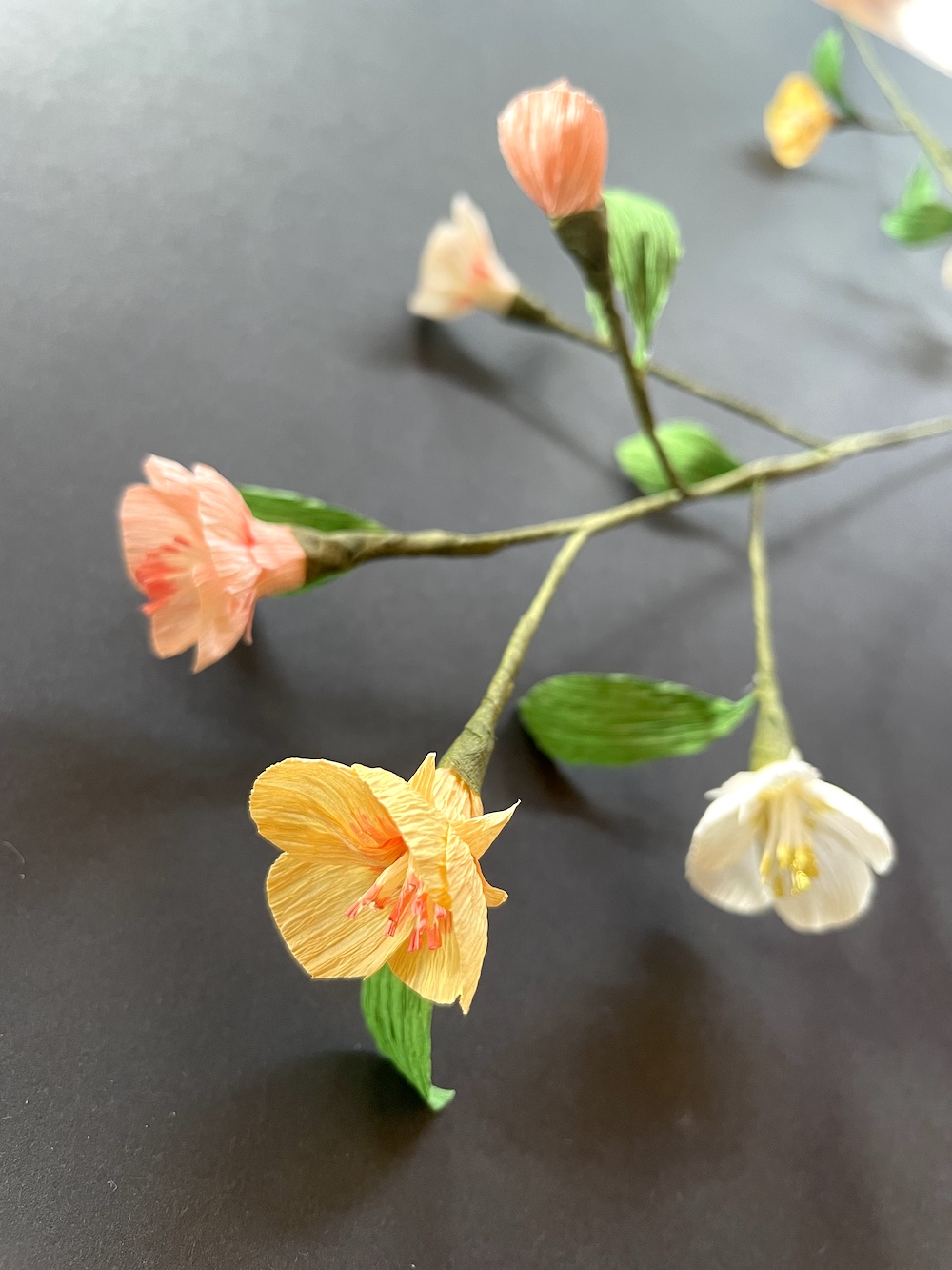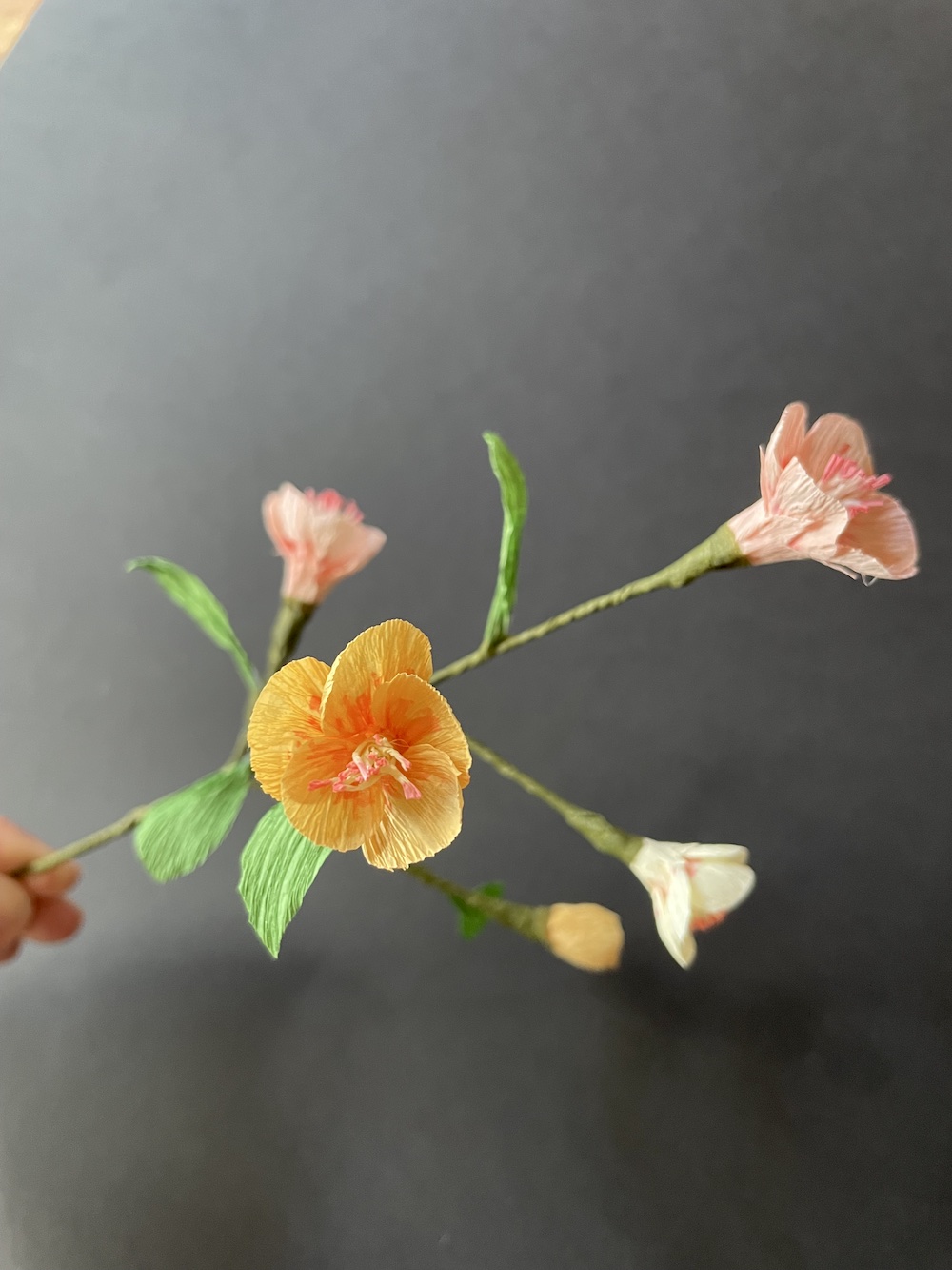 Tige fleurs rose, blanche et orangé Fleurs en papier faite à la main