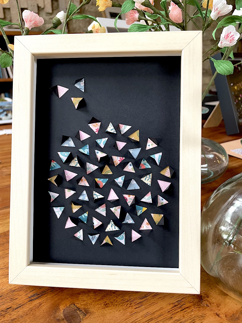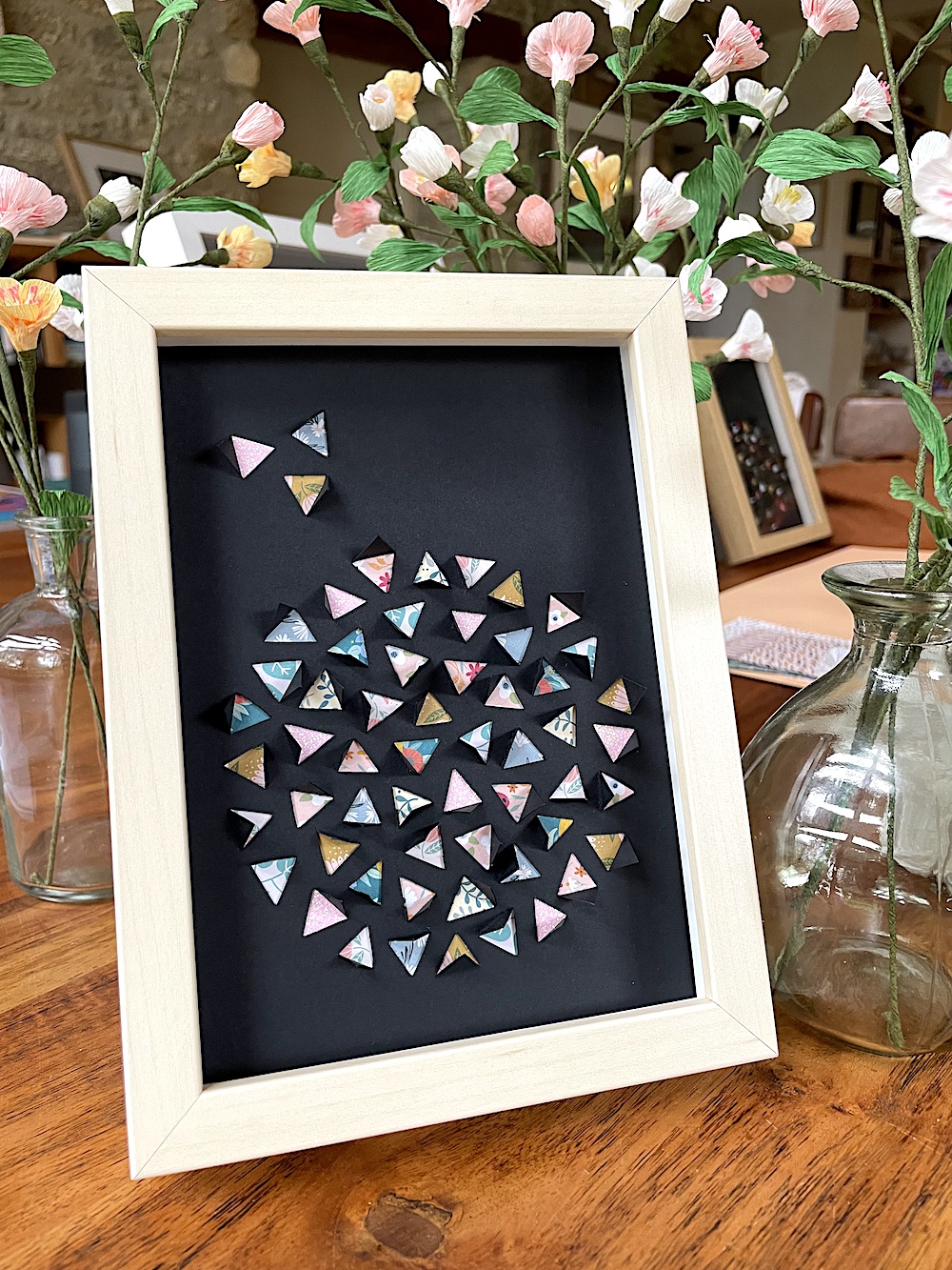 Modèle Domi Petit format décoration “triangles découpés” encadrée (accroche murale et à poser)