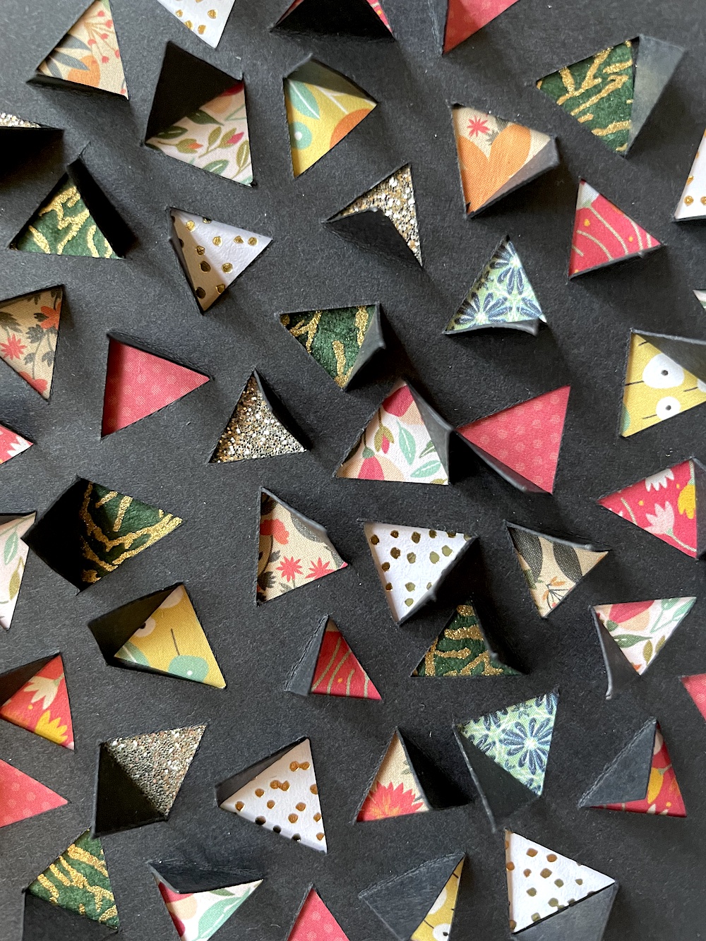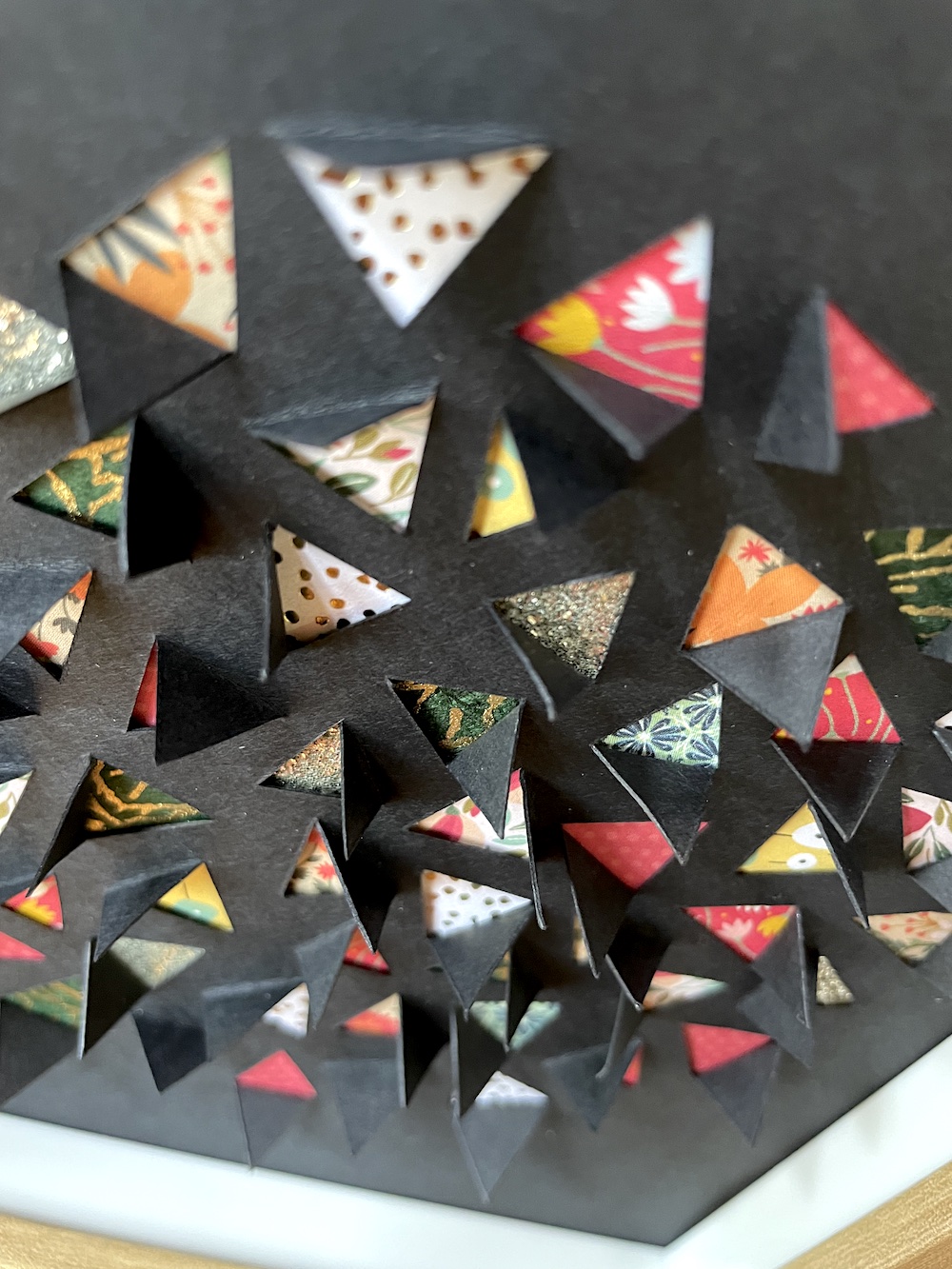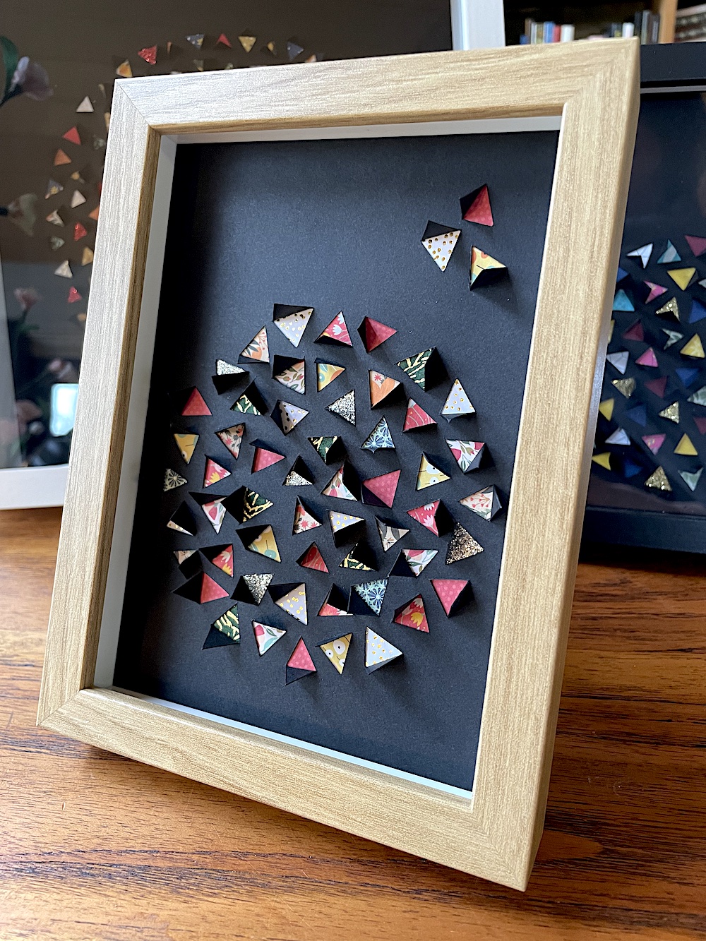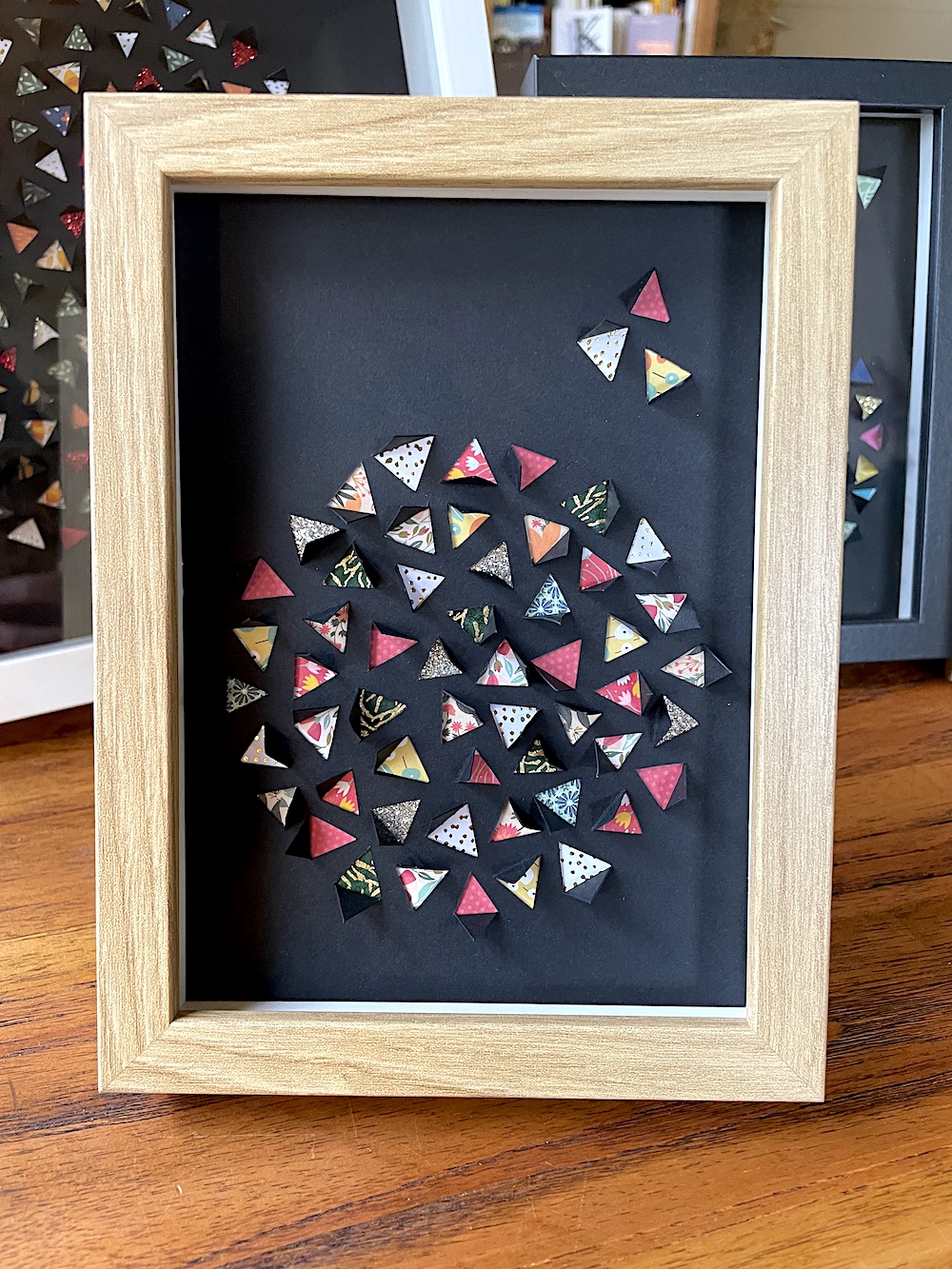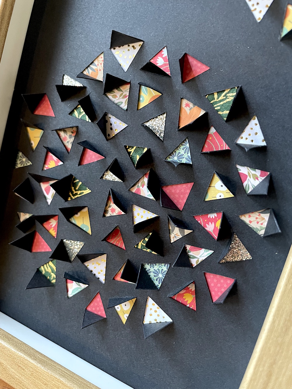 Modèle Domi Petit format décoration “triangles découpés” encadrée (accroche murale et à poser)